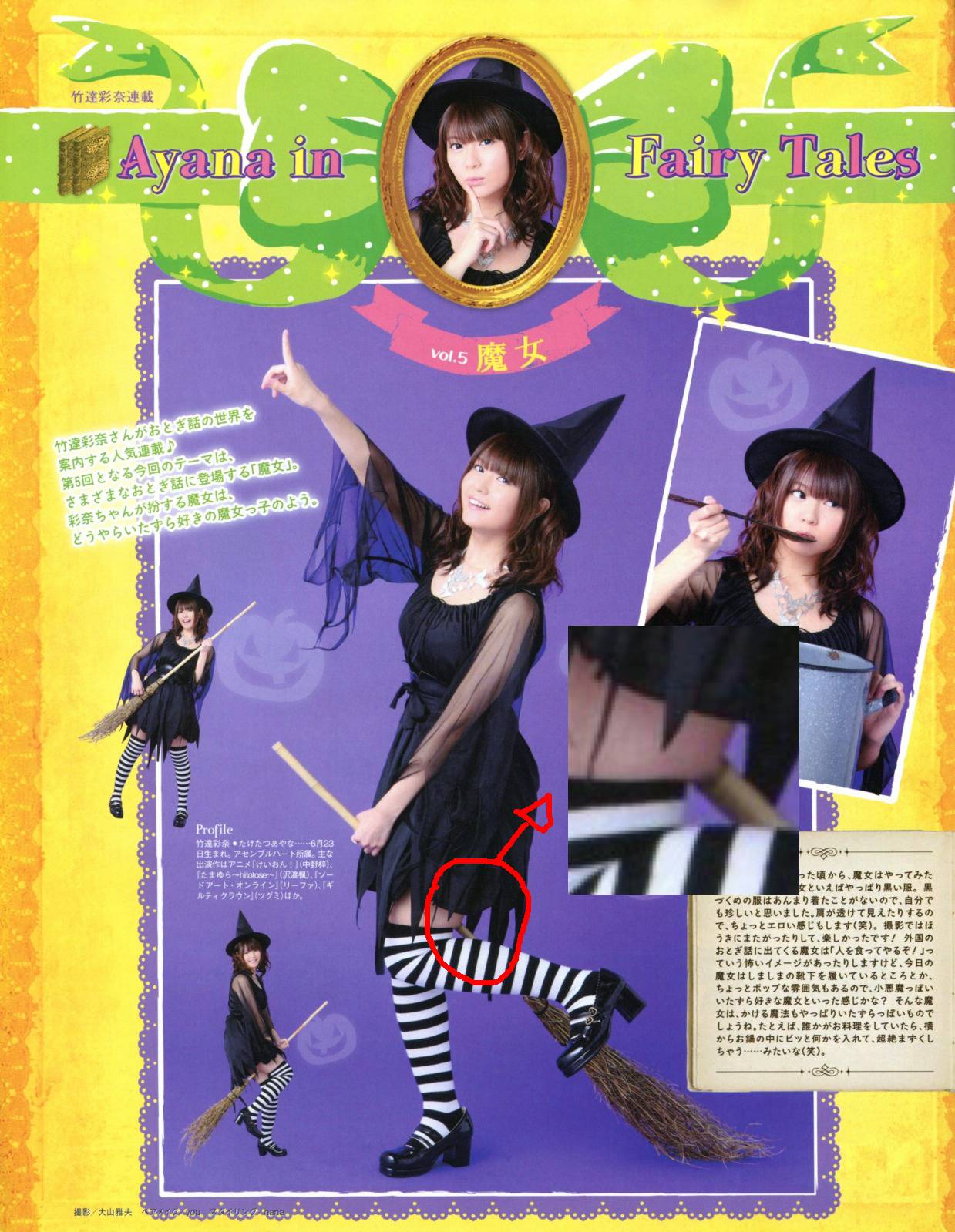 箒を股に挟んでるからはみ出てるんでしょ