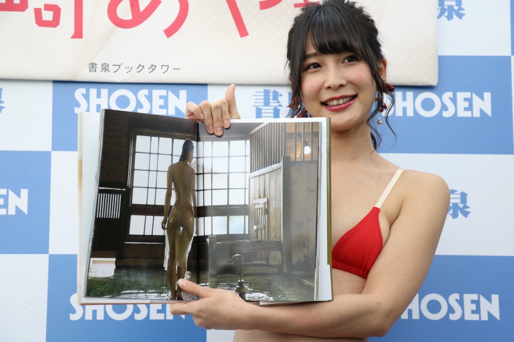 写真集を手にしながら川崎は「念願のっていう感じです。表紙も裏表紙も自分で選びました。自信の表紙です」とにっこり。その奇跡のスタイルがよく分かる大胆な”裸体”を濡れた長い黒髪で胸元を隠すというセクシー表紙だが「髪の毛濡らさないと広がって見えちゃうので、 一生懸命集めて(笑)。写真集のために隠れるくらいまで伸ばしたんです。終わった次の日に切りに行ったので、もう再現不可能です」とにっこり。いつも露出多めの水着や、スケスケ 衣装などで惑わす川崎でも史上最高にヌーディーな仕上がりとなっている写真集だが、「こんなに脱いでるのに、女の子から”買ったよ”とか、イベントにも来てくれたりとか、”エロいけどキレイ”と言ってもらえていい反響だなって思います。本当に感謝感謝です」と喜んだ。