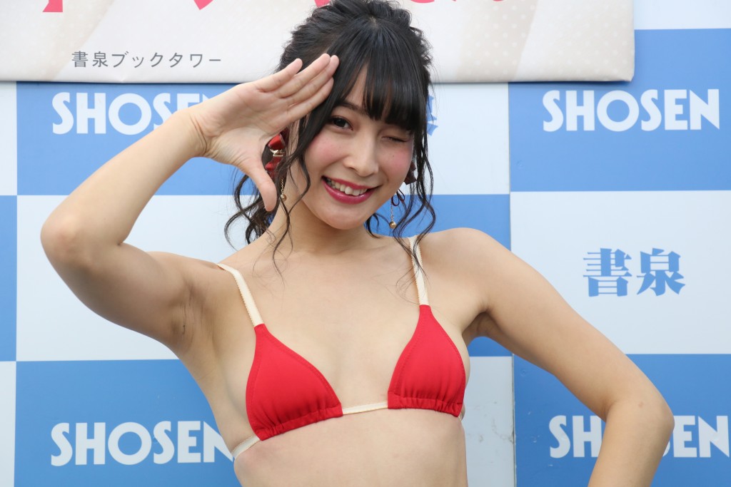 最強のくびれでグラビア界に君臨する川崎あや。ついに初めての写真集『触れてくれますか』 (双葉社)をリリース、記念イベントが秋葉原・書泉ブックタワーで開催され、250名を超える大勢のファンが詰めかけた。