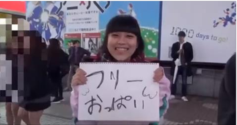 東京・渋谷のハチ公前広場で「フリーおっぱい」と書かれたスケッチブックを掲げ、通行人に胸を触らせるなどしたとして、